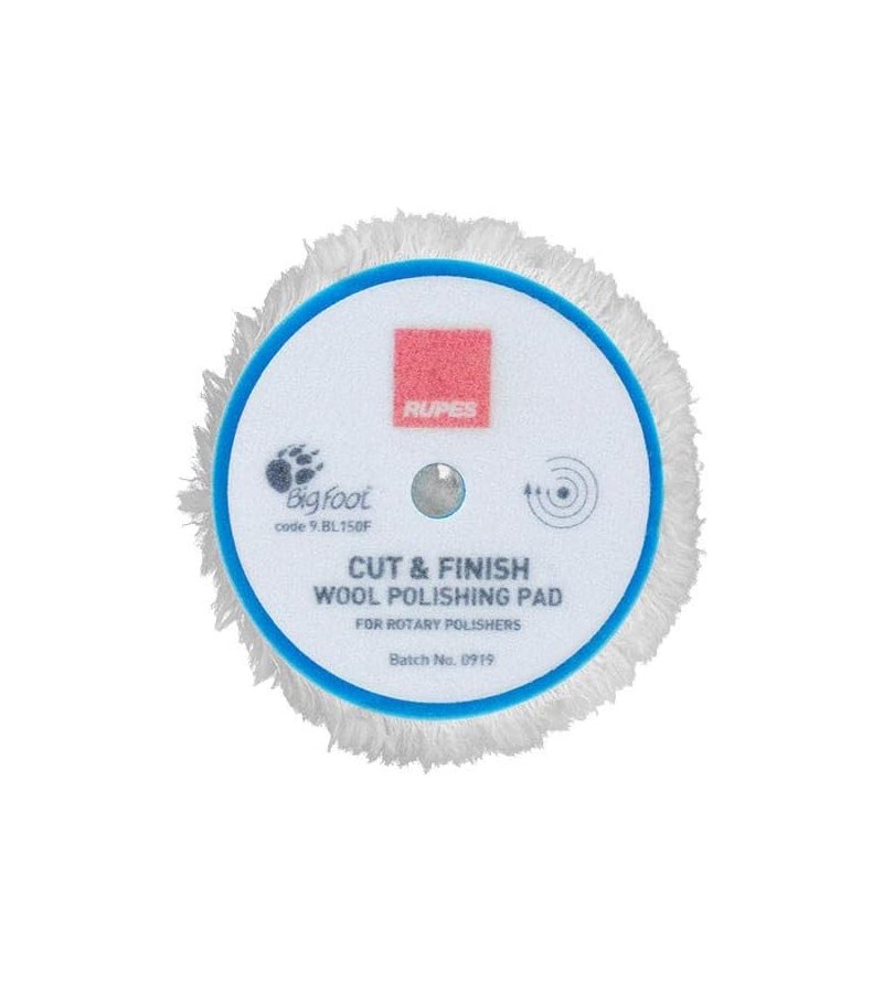 Las almohadillas de lana RUPES Cut & Finish son compatibles con prácticamente todas las pulidoras de estilo rotativo, pero funcionan mejor con una herramienta de baja velocidad y alto torque como la pulidora RUPES BigFoot LH19E y en conjunto con el compuesto de corte RUPES XC-2.