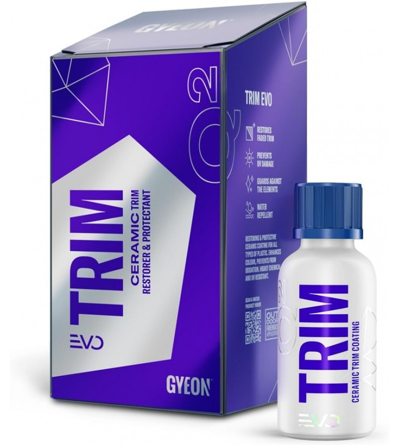 Q² Trim EVO ha visto su fórmula completamente revisada, dando como resultado una mejor capa protectora autolimpiante y espesa que se puede aplicar sobre diferentes partes del vehículo como por ejemplo sobre plásticos con su estructura, sobre piezas sin pintar y molduras con revestimiento transparente como colín y cubiertas de faros después de renovarlas. Es poco probable que esa cualidad única se encuentre en otros productos disponibles.
