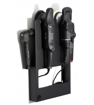 Un soporte metálico de alta calidad para 2 a 4 pulidoras con un práctico compartimento para cables. Fabricado con acero estructural de la más alta calidad y tecnología. El colgador se pintó por ambos lados con pintura en polvo de alta calidad, con una estructura más fina que lo protege contra arañazos y la decoloración. Un colgador así asegurado le durará muchos años.