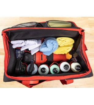 Este bolso de herramientas, fabricado con tela Oxford 600D de alta resistencia, es el compañero perfecto para el detallado profesional de autos. Guarda todo lo que necesitas, desde pulidora y productos químicos para detallado hasta cepillos y pads , en una bolsa práctica y organizada.