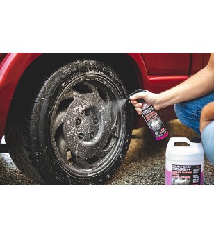 Elimina de forma segura el polvo acumulado de los frenos, el aceite, la suciedad, las manchas y la corrosión leve de las ruedas de calidad superior sin dañar la delicada superficie.