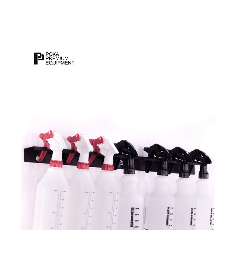 Soporte funcional y conveniente para botellas y atomizadores. A pesar de sus pequeñas dimensiones, la percha es capaz de soportar una carga muy pesada. Los agujeros se ajustan a la mayoría de los tipos de atomizadores y rociadores.