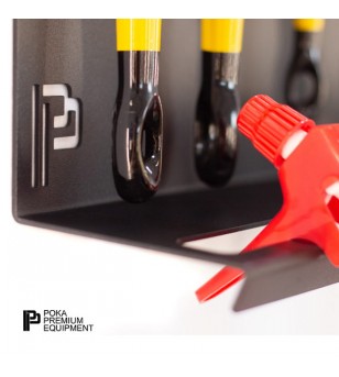 Colgador de brochas y biberones funcional y cómodo. Las aberturas superiores son adecuadas para la mayoría de los tamaños de cepillos y los canales inferiores son adecuados para la mayoría de los tipos de atomizadores y rociadores. La sólida estructura aguantará más de 10 kg de carga sin levantarse.