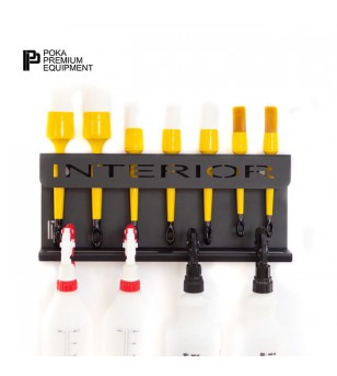 Colgador de brochas y biberones funcional y cómodo. Las aberturas superiores son adecuadas para la mayoría de los tamaños de cepillos y los canales inferiores son adecuados para la mayoría de los tipos de atomizadores y rociadores. La sólida estructura aguantará más de 10 kg de carga sin levantarse.