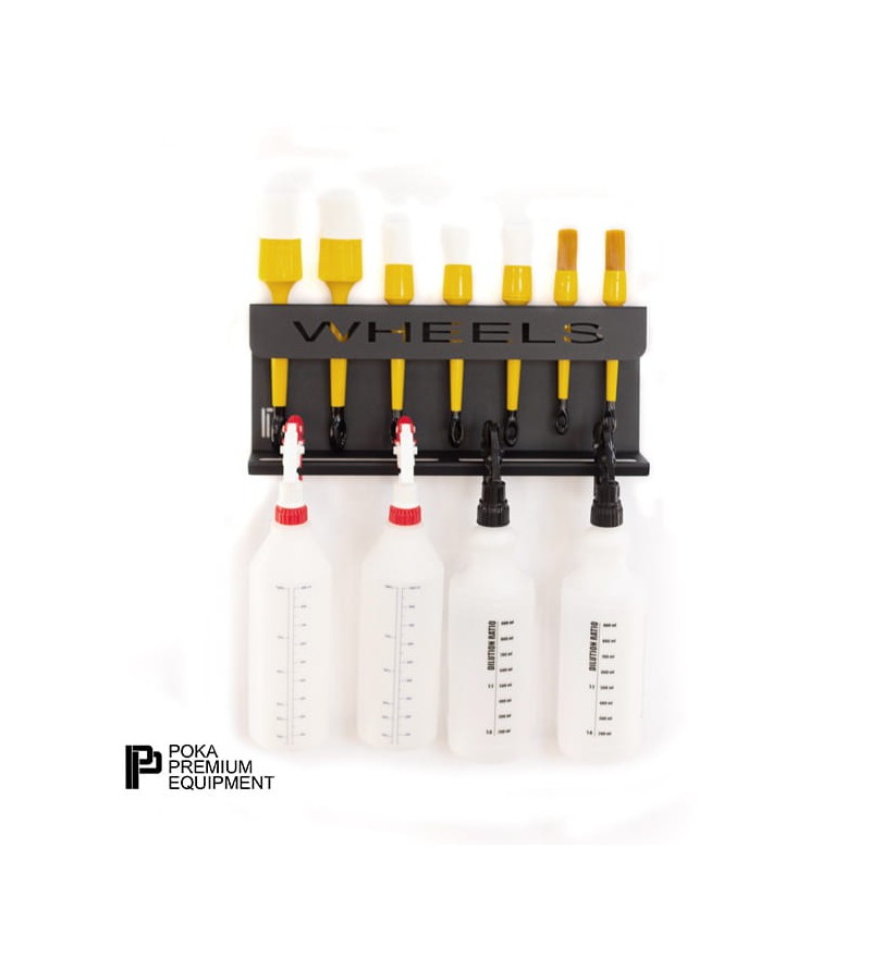 Colgador de brochas y biberones funcional y cómodo. Las aberturas superiores son adecuadas para la mayoría de los tamaños de cepillos y los canales inferiores son adecuados para la mayoría de los tipos de atomizadores y rociadores. La sólida estructura aguantará más de 10 kg de carga sin levantarse.