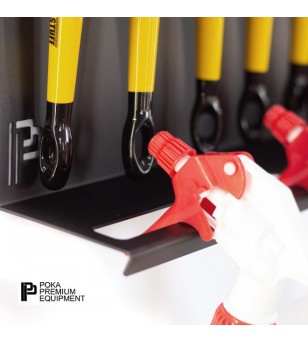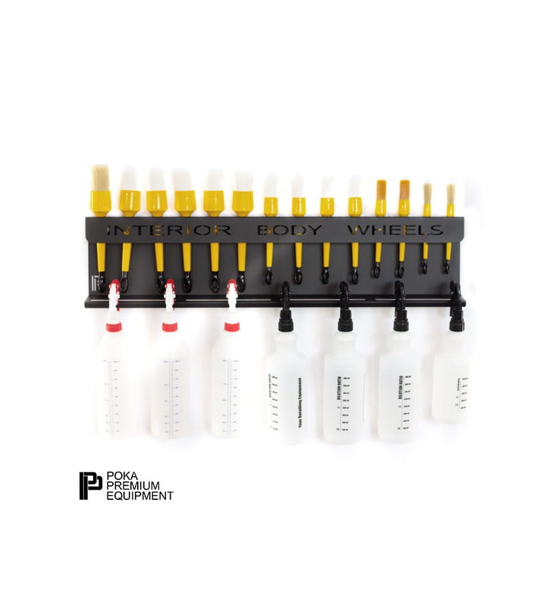 Colgador de brochas y atomizadores funcional y cómodo. Las aberturas superiores son adecuadas para la mayoría de los tamaños de cepillos y los canales inferiores son adecuados para la mayoría de los tipos de atomizadores y rociadores. La sólida estructura aguantará más de 20 kg de carga sin levantar.