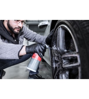 El entorno espeso asegura que el pulverizador Magic Wheel Cleaner se adhiera bien a la superficie. La suciedad queda atrapada y el limpiador no se seca, incluso luego de un buen rato de haberse aplicado.